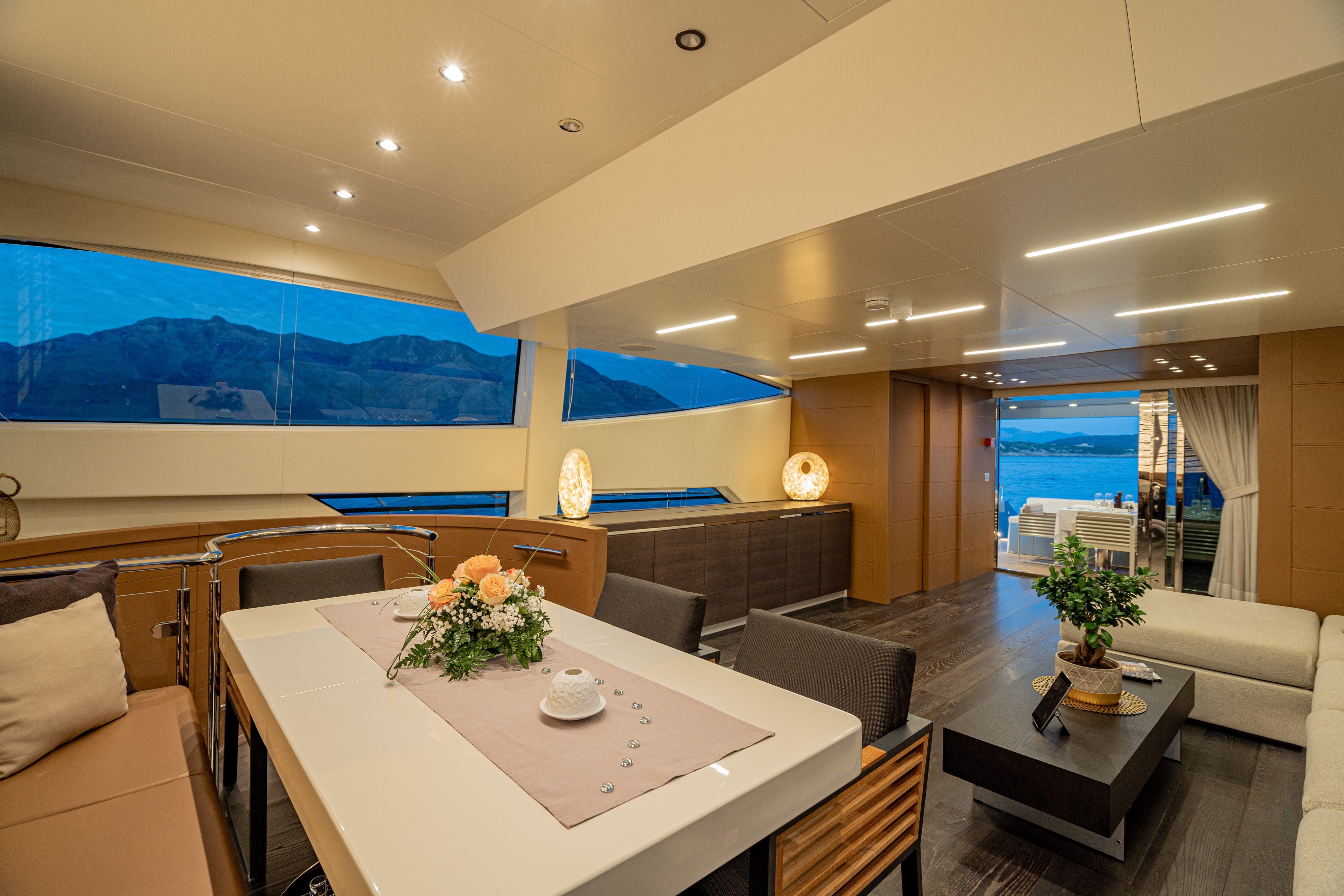 Indulge in the 5 star Luxury Lifestyle on board 55 Mega Yacht with a crew of 5 catering to your every need while Cruising the stunning Mediterranean Sea in Style.