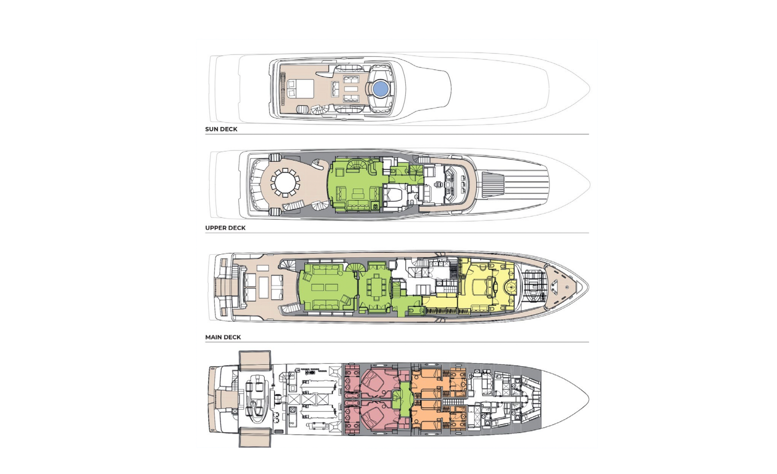 This Stunning Motor Yacht features a remarkable design with a contemporary and cozy interior, large windows throughout that brighten the interior space with the views of the Mediterranean. Featuring 5 Spacious Suites, an open living area, a large sundeck, plenty of outdoor space for dining, relaxation, and sunbathing, & a Jacuzzi, this Mega Yacht makes for a luxurious Yacht Charter Holiday in the Mediterranean.