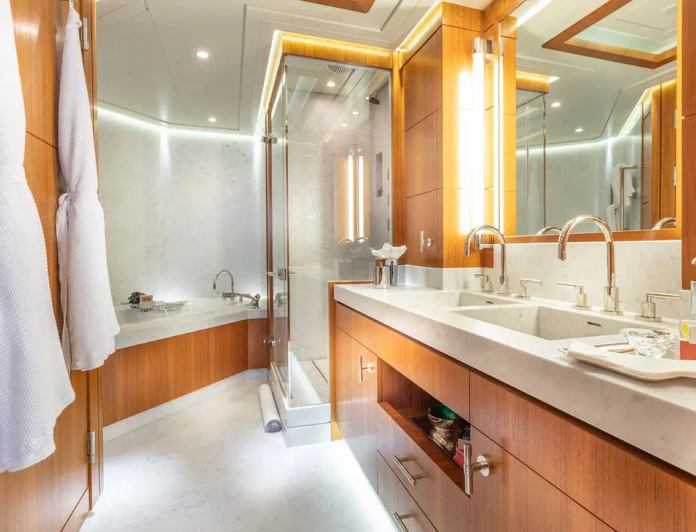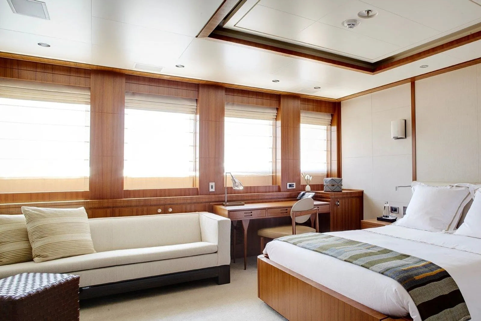 MAN OF STEEL is a Luxurious Mega Yacht measuring 86m in length and is available for Charter on the French Riviera. Accommodating up to 12 guests in 7 cabins makes this Extremely Spacious Yacht suitable for a weekly charter in the Mediterranean. The Extraordinary Vessel features large floor to Ceiling windows throughout the yacht that brighten the interior space and outline the decor creating a unique and modern look.