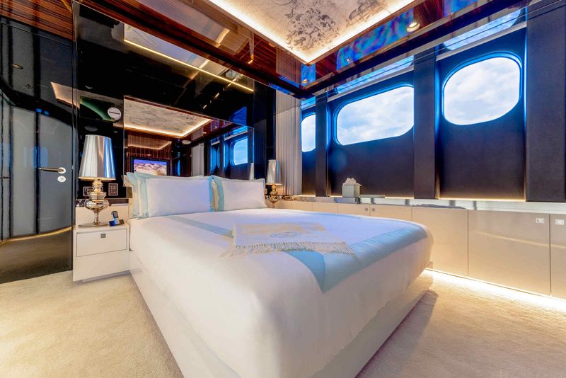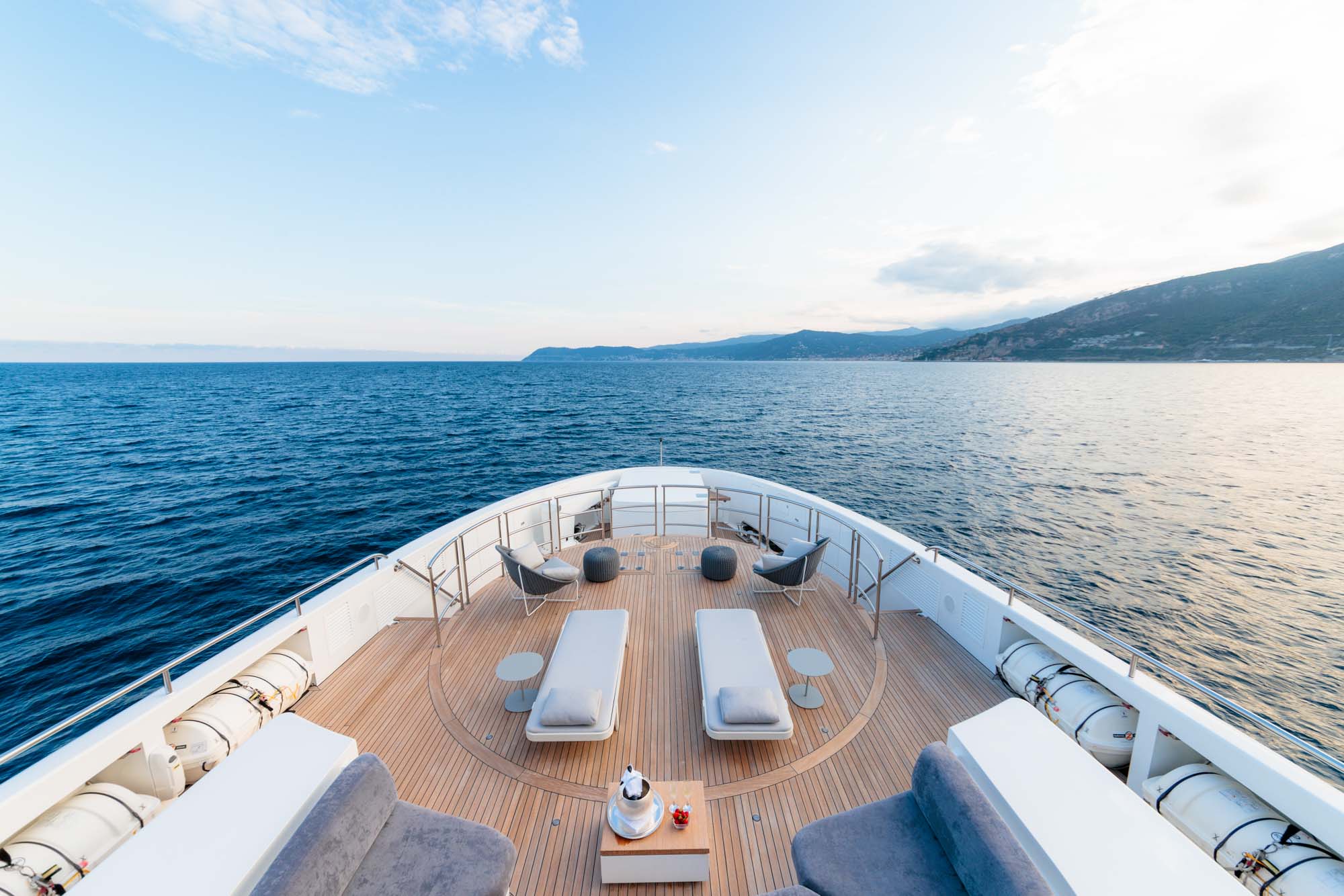This Spectacular Yacht features Stunning design with a contemporary and cozy interior, large windows throughout the yacht that showcase the Picturesque Sea Views that brighten the interior space. Featuring 5 Spacious Suites, an open living area, kitchen, a large sundeck, plenty of outdoor space, & a Jacuzzi, this Superyacht makes for a luxurious Yacht Charter Holiday in the Mediterranean.