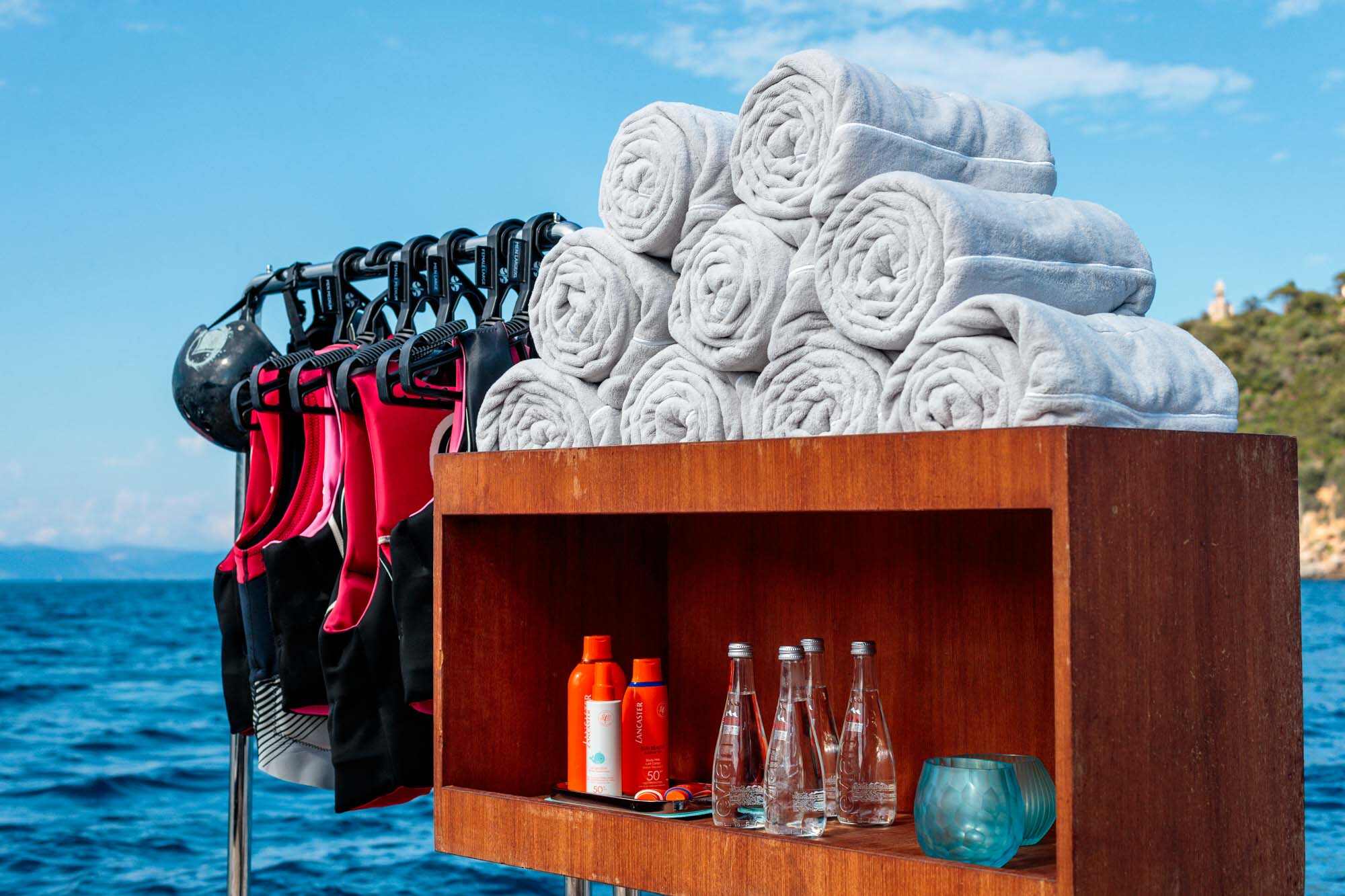 Take advantage of the many Watersport activities on board your French Riviera Yacht Charter like water skiing, paddle boarding, Jet Skiing, Seabobs, snorkeling, and much more on board this Extraordinary Mega Yacht in the Western Mediterranean.