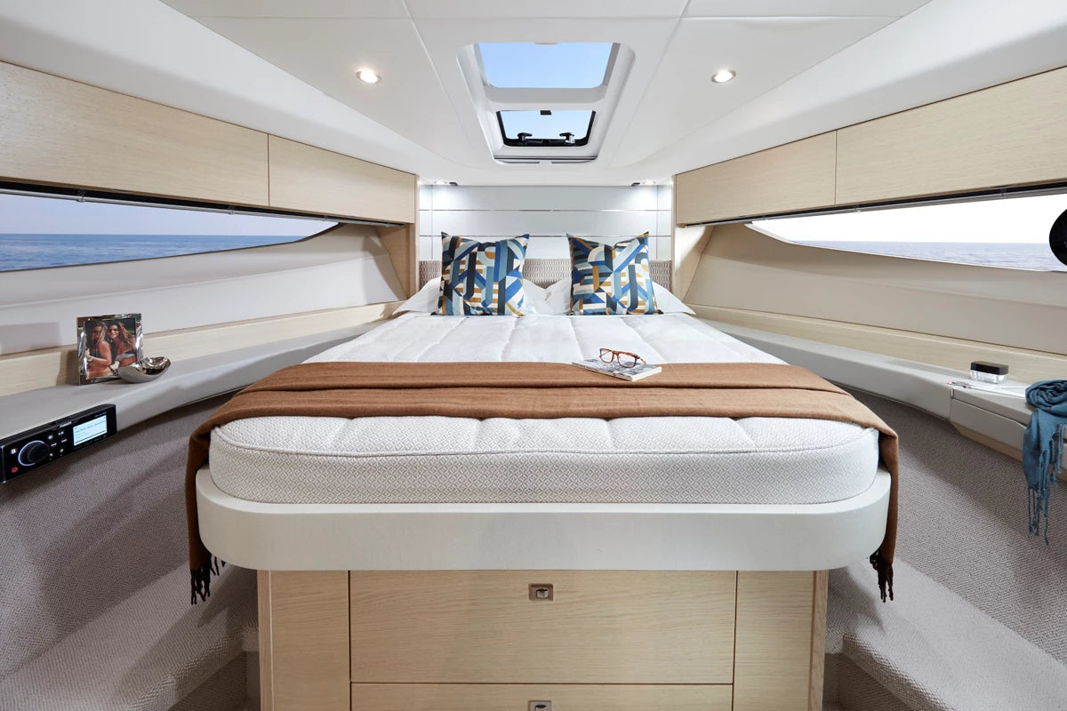 Luxury Princess V40 is an Extraordinary Private Motor Yacht available for Charter in the South of France. Built is 2019, its modern and open interior is perfect for a beautiful Day Charter or Weekly Yacht Charter Holiday in Saint Tropez. Its interior boasts of 2 comfortable cabins, a bathroom, kitchenette, interior dinning area, and lots of space on the exterior of the Yacht for Sunbathing and Dinning.