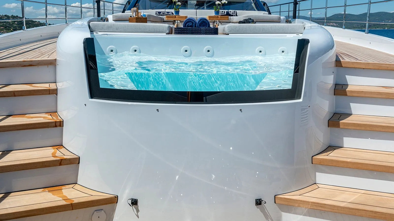 Indulge in the 5 star Luxury Lifestyle on board M/Y ARSANA with a full crew of 6 at your service catering to your every need while Cruising the Mediterranean in Style. M/Y ARSANA boasts of a large glass Jacuzzi on the bow, super spacious exterior deck to lounge, entertain, and sunbath.
