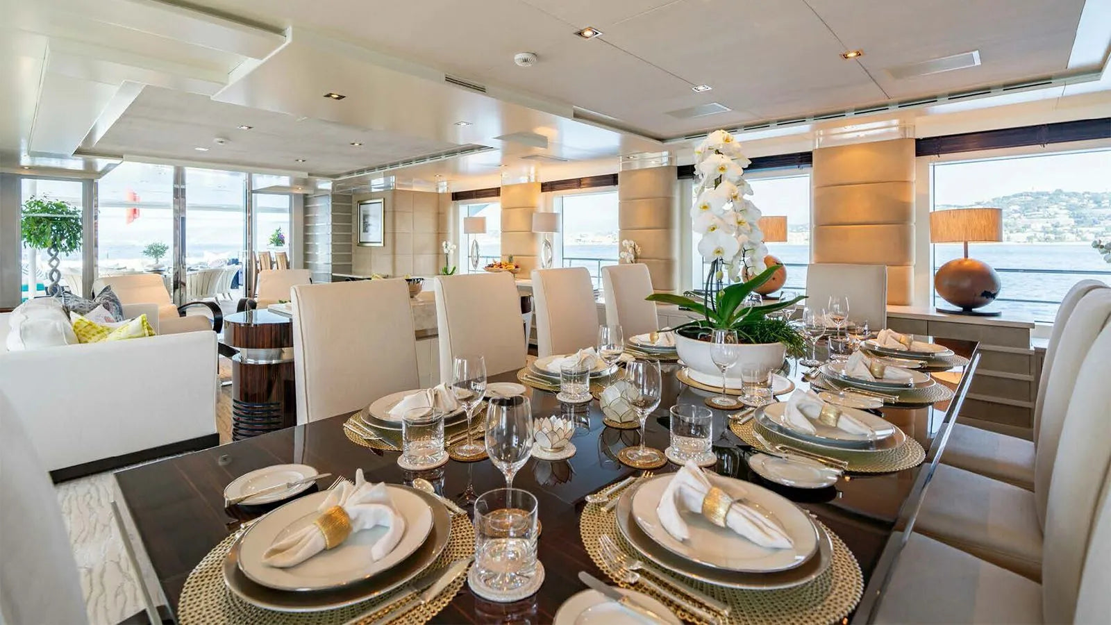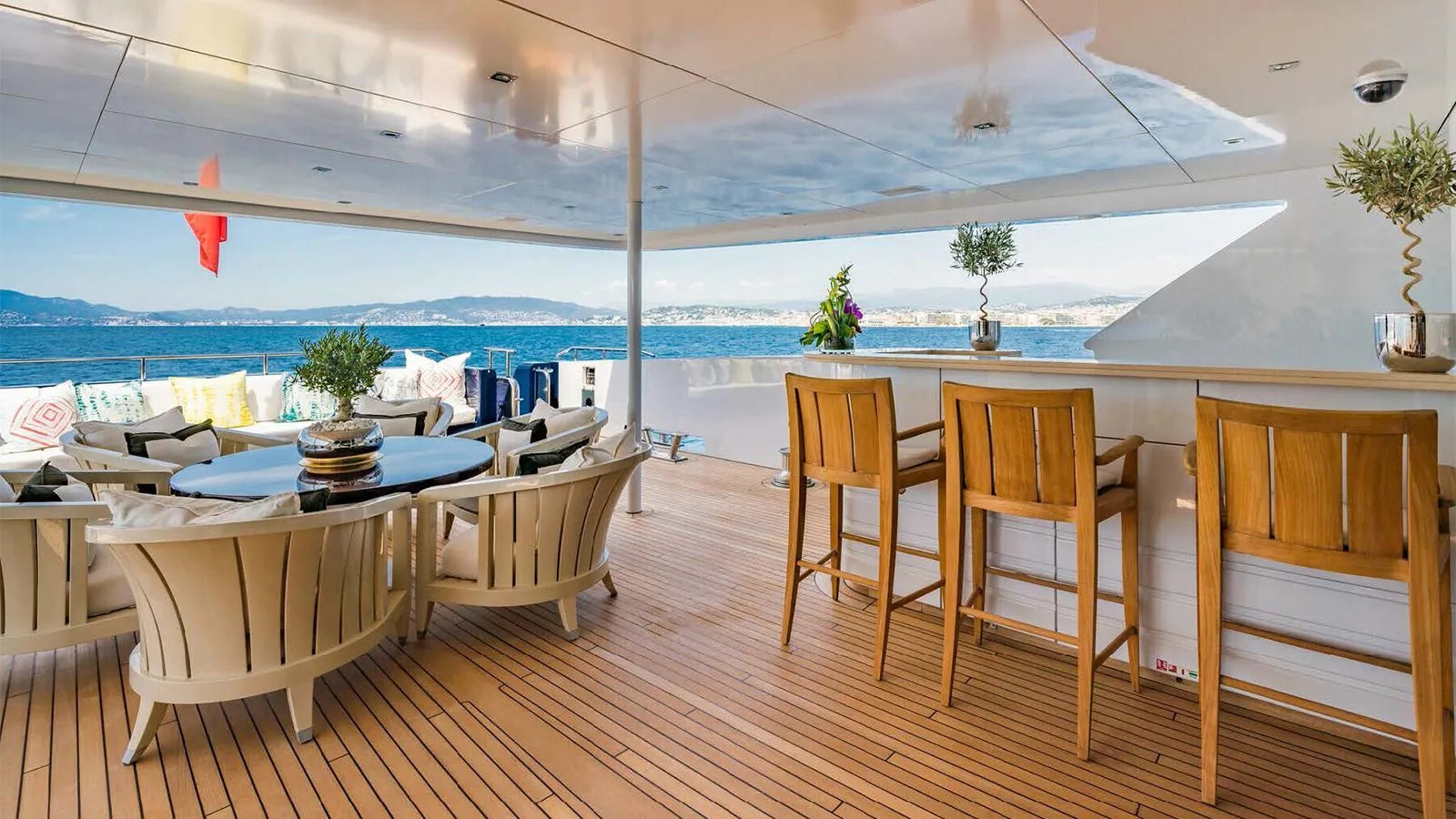 This Opulent Vessel features Stunning design with a contemporary and cozy interior, large windows throughout the yacht that reveal the Stunning Picturesque Sea Views that brighten the interior space. Featuring 5 Spacious Suites, an open living area, kitchen, a large sundeck, plenty of outdoor space, & a Jacuzzi, this Superyacht makes for a luxurious Yacht Charter Holiday in the Mediterranean.