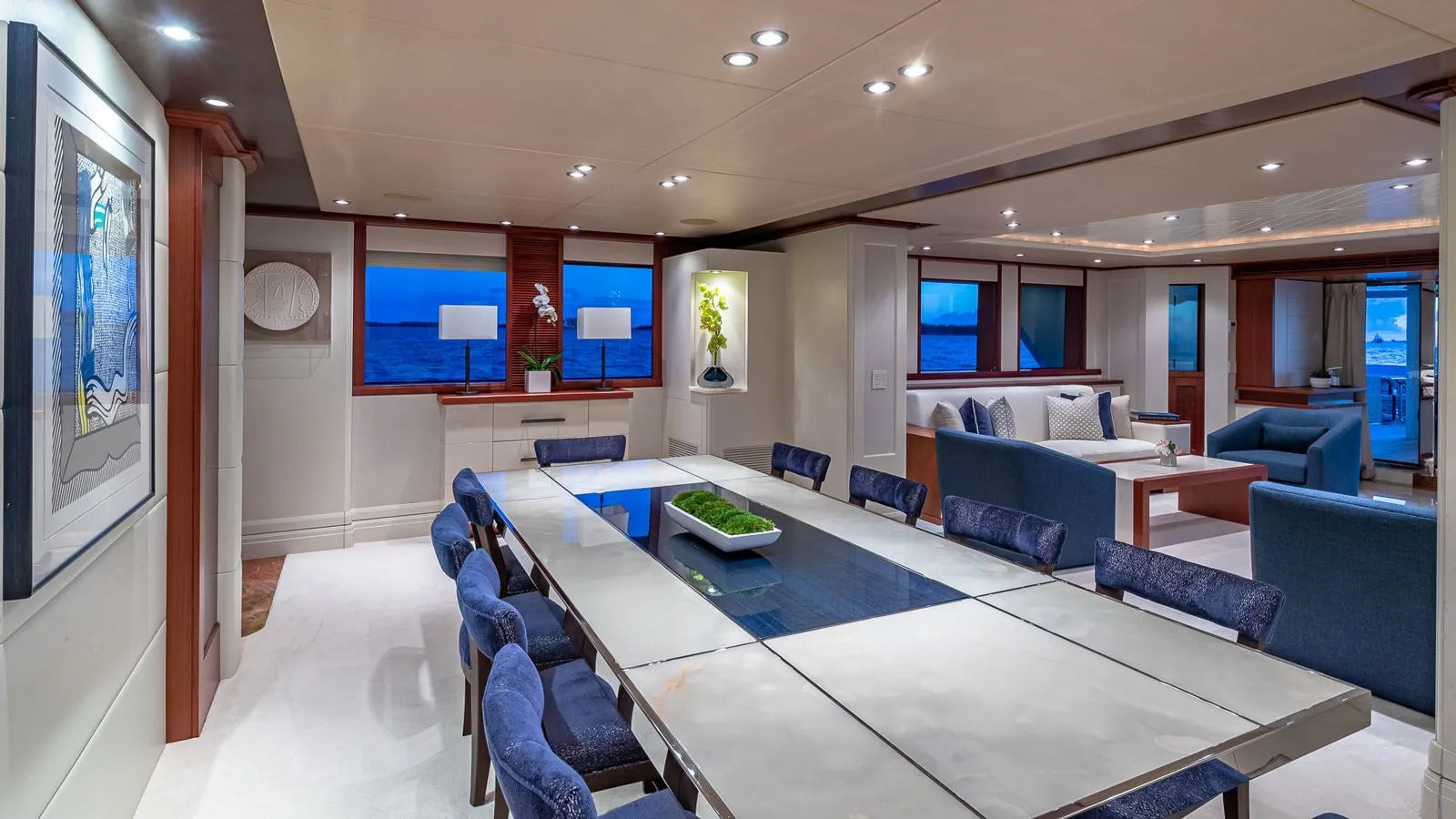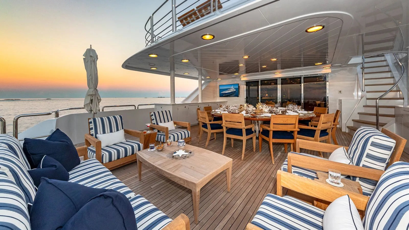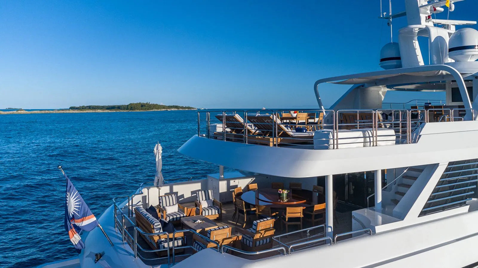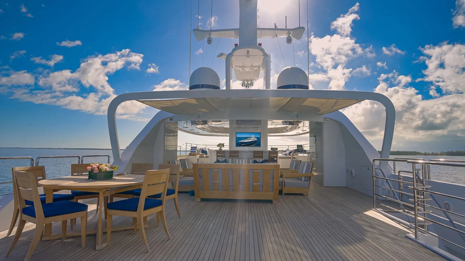 This Spectacular Vessel features Unique design with a Modern interior, large windows throughout the yacht that reveal the Picturesque Sea Views that brighten the interior space. Featuring 5 Spacious Suites, a large sundeck, plenty of outdoor space, & a jacuzzi, this Mega Yacht makes for a luxurious Yacht Charter Holiday in the Bahamas, the Caribbean, or in the South of France.