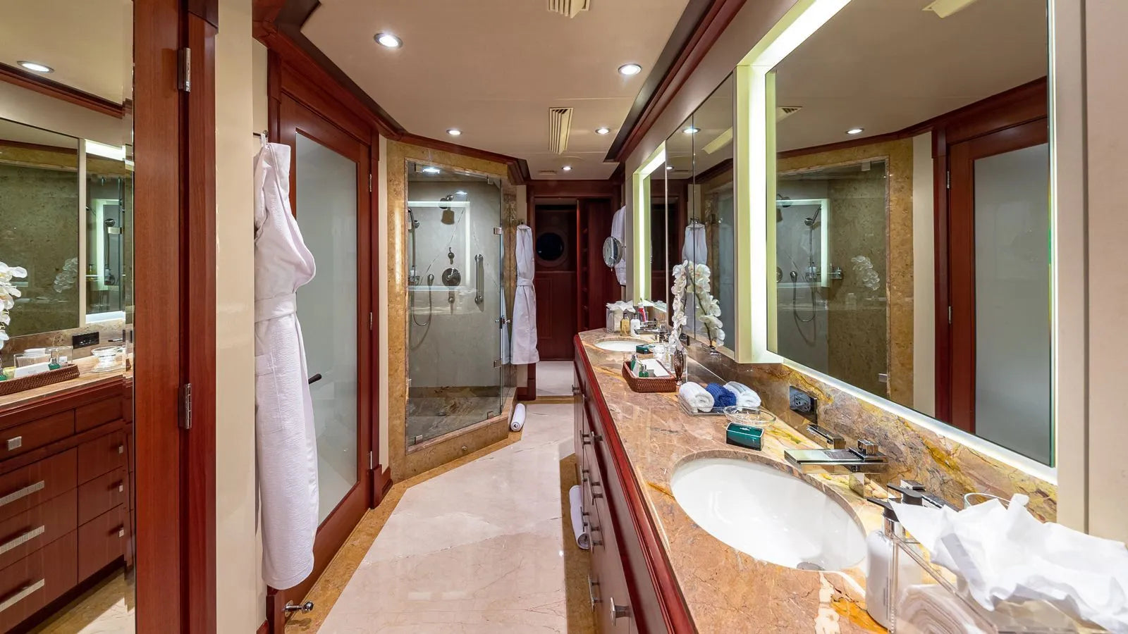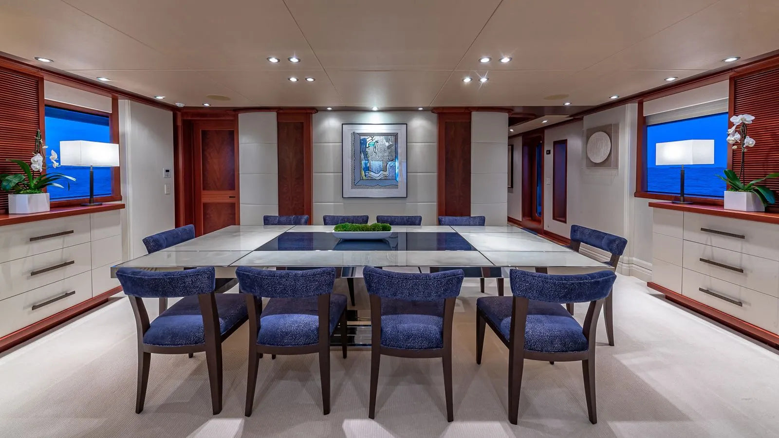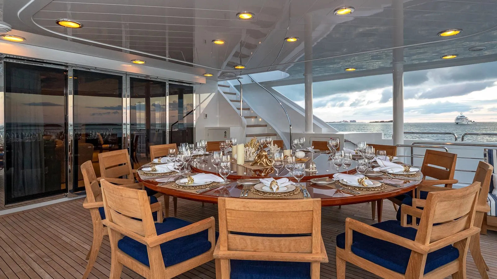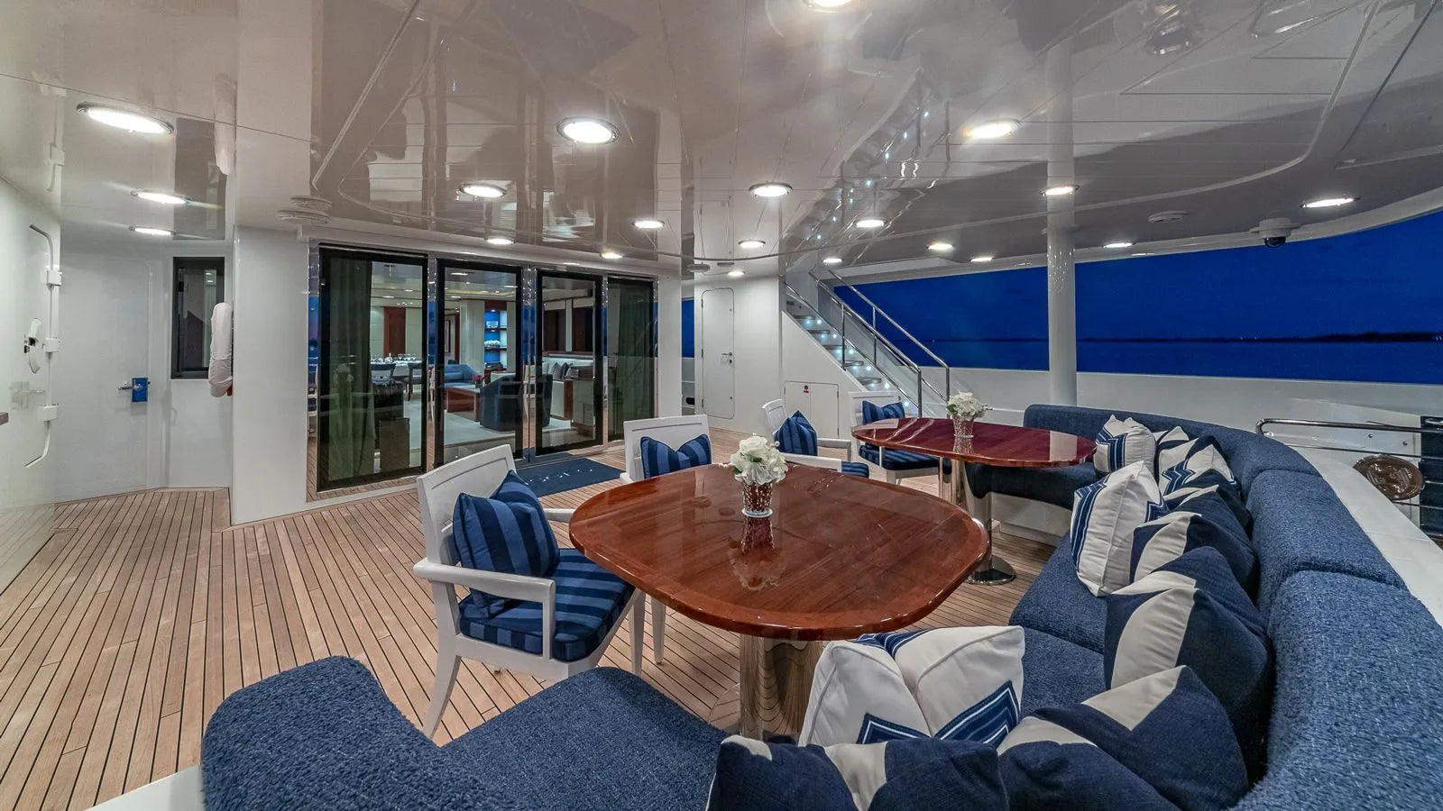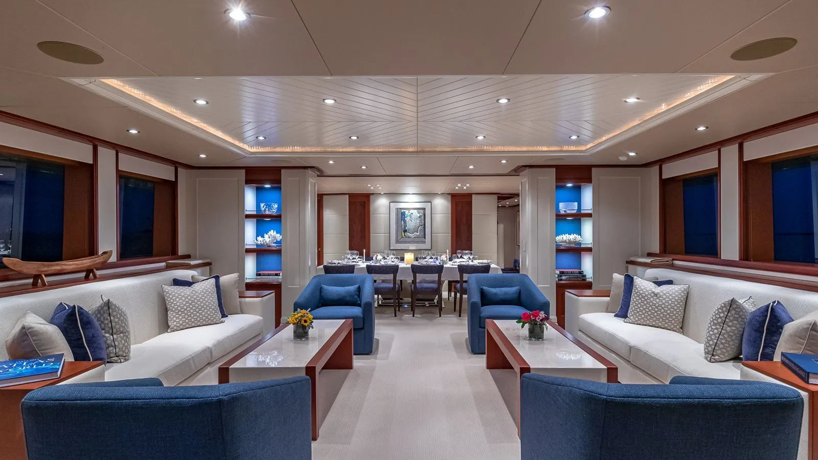 This Spectacular Vessel features Unique design with a Modern interior, large windows throughout the yacht that reveal the Picturesque Sea Views that brighten the interior space. Featuring 5 Spacious Suites, a large sundeck, plenty of outdoor space, & a jacuzzi, this Mega Yacht makes for a luxurious Yacht Charter Holiday in the Bahamas, the Caribbean, or in the South of France.
