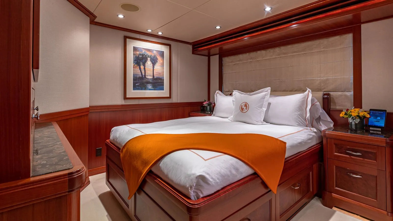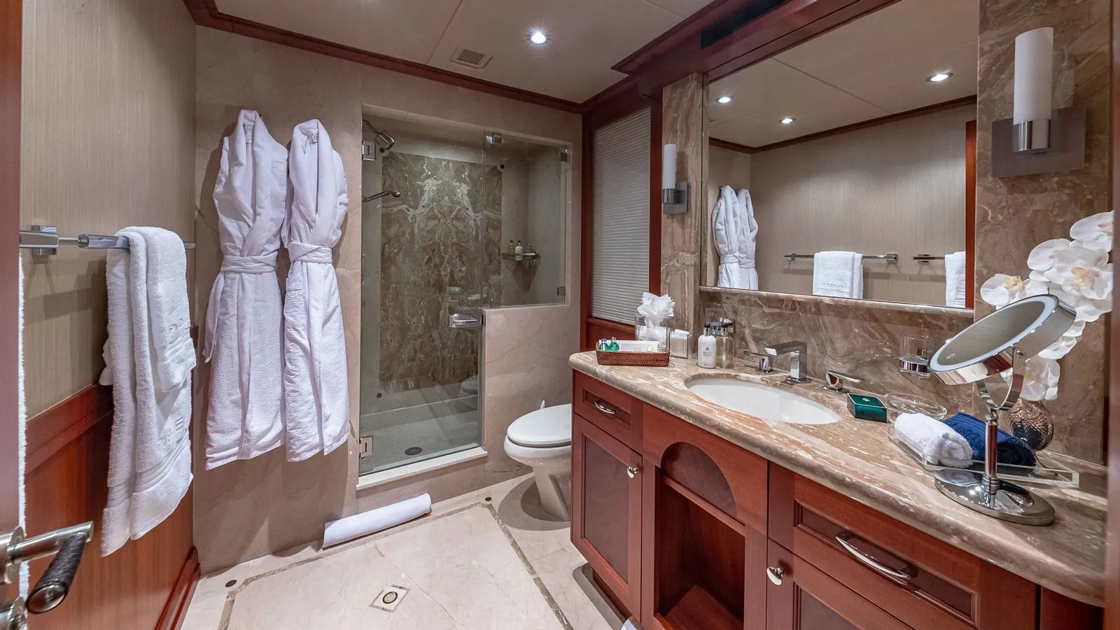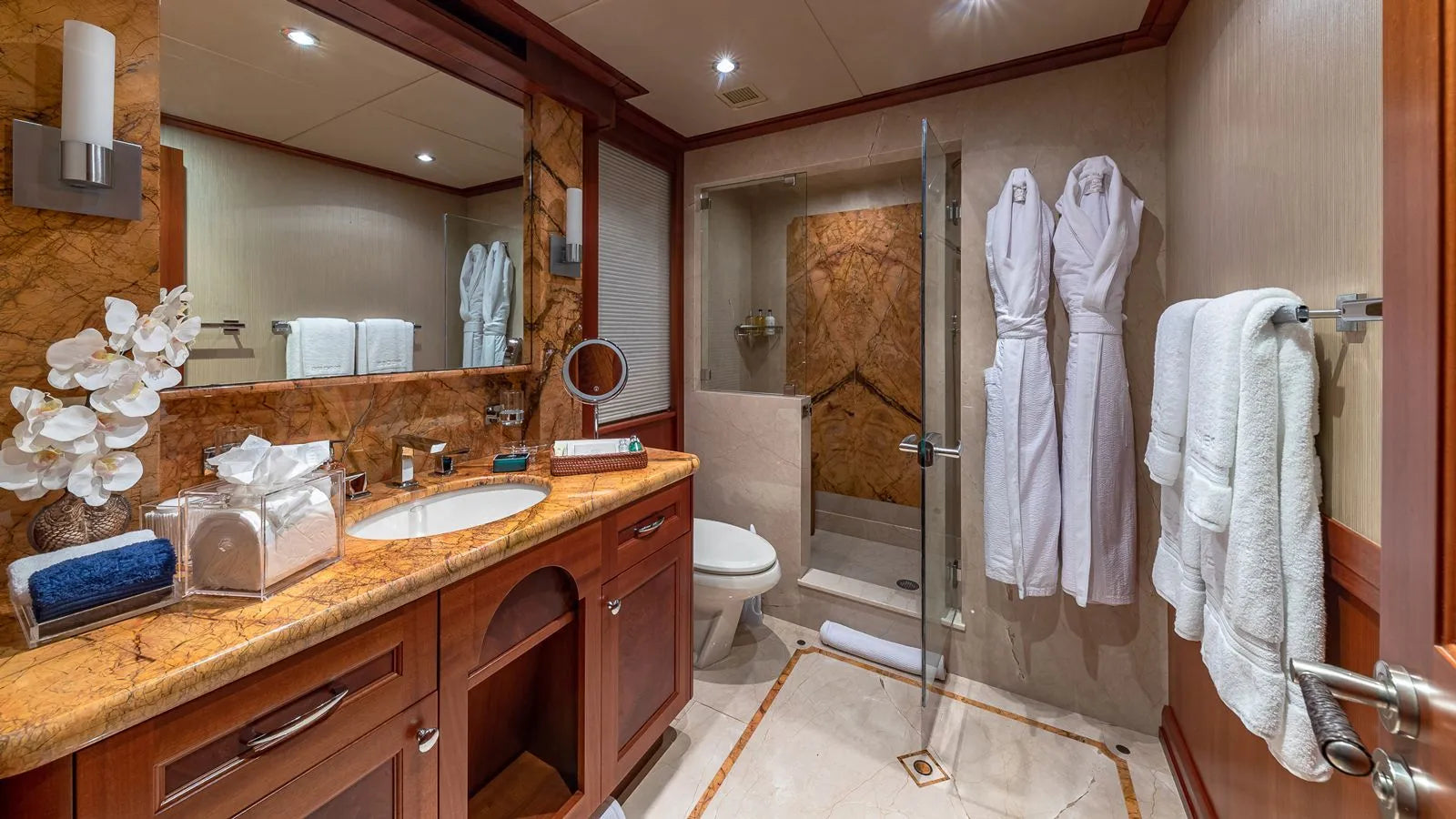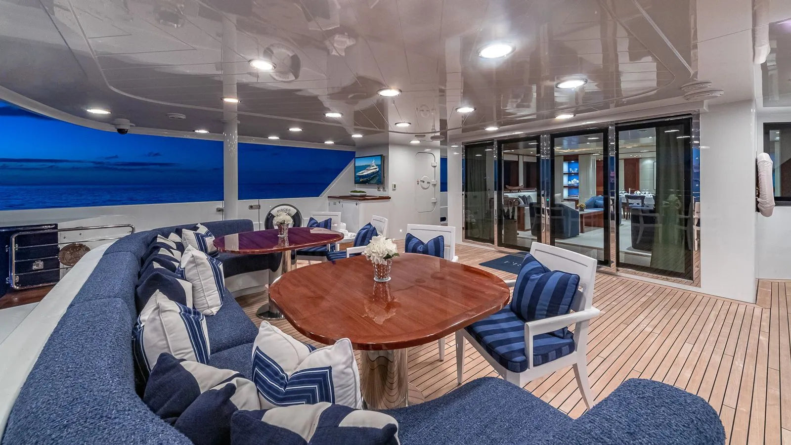 This Spectacular Vessel features Unique design with a Modern interior, large windows throughout the yacht that reveal the Picturesque Sea Views that brighten the interior space. Featuring 5 Spacious Suites, a large sundeck, plenty of outdoor space, & a jacuzzi, this Mega Yacht makes for a luxurious Yacht Charter Holiday in the Bahamas, the Caribbean, or in the South of France.