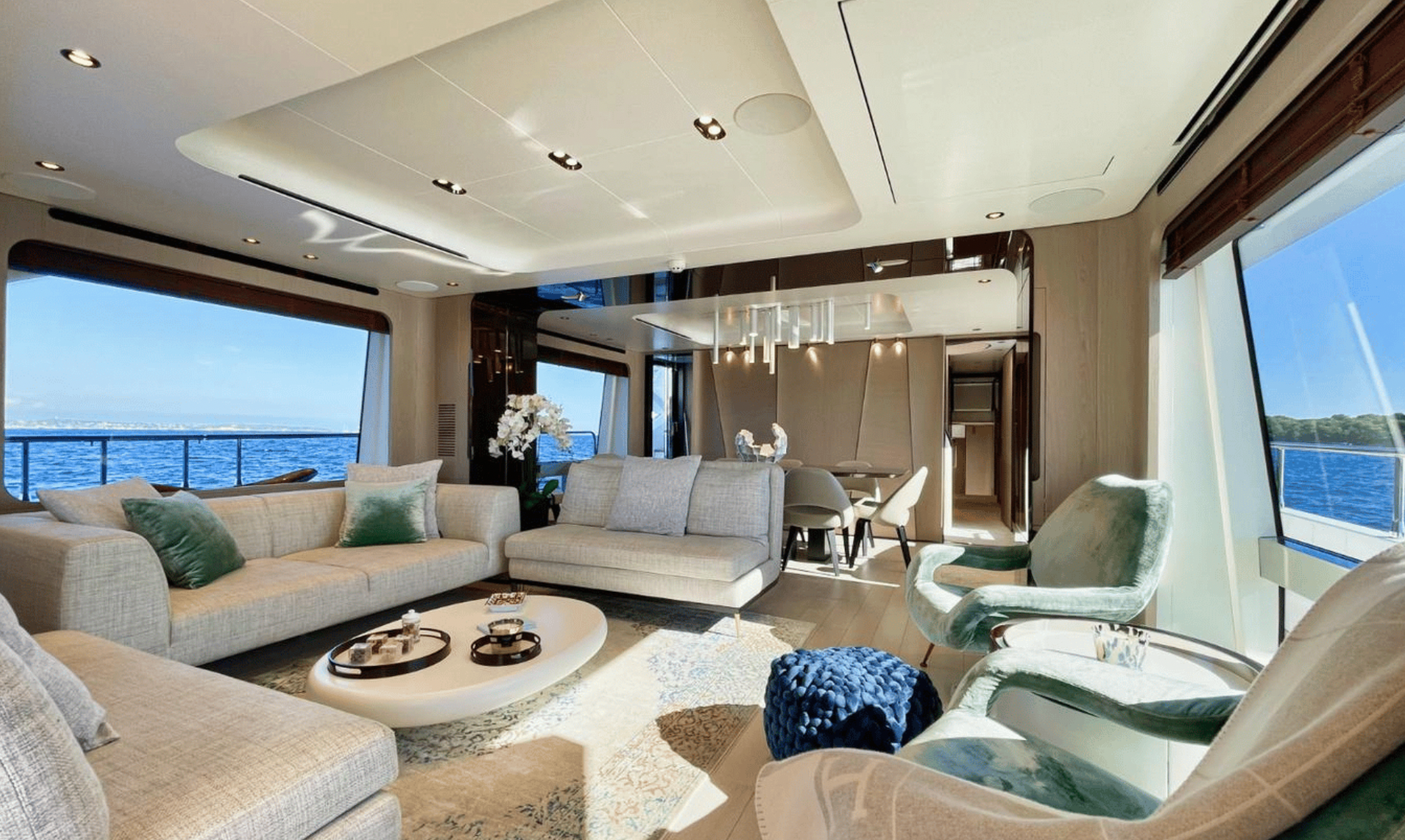 M/Y WAVE Boasts of Stunning design with Modern finishes, large windows throughout the yacht that reveal the Stunning Picturesque Sea Views that brighten the interior space. Featuring a Large open living area, a spacious sundeck, plenty of outdoor space for relaxation, sunbathing, and a Spacious dining area, this Motor Yacht makes for a luxurious Yacht Charter Holiday in the Mediterranean.
