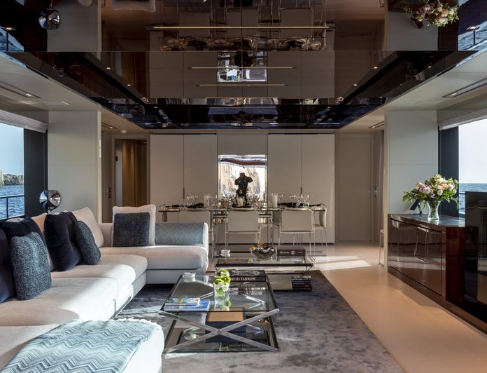This Extraordinary Vessel features Stunning Italian design with a contemporary and cozy interior, large floor to Ceiling windows throughout the yacht that reveal the Stunning Picturesque Sea Views that brighten the interior space.