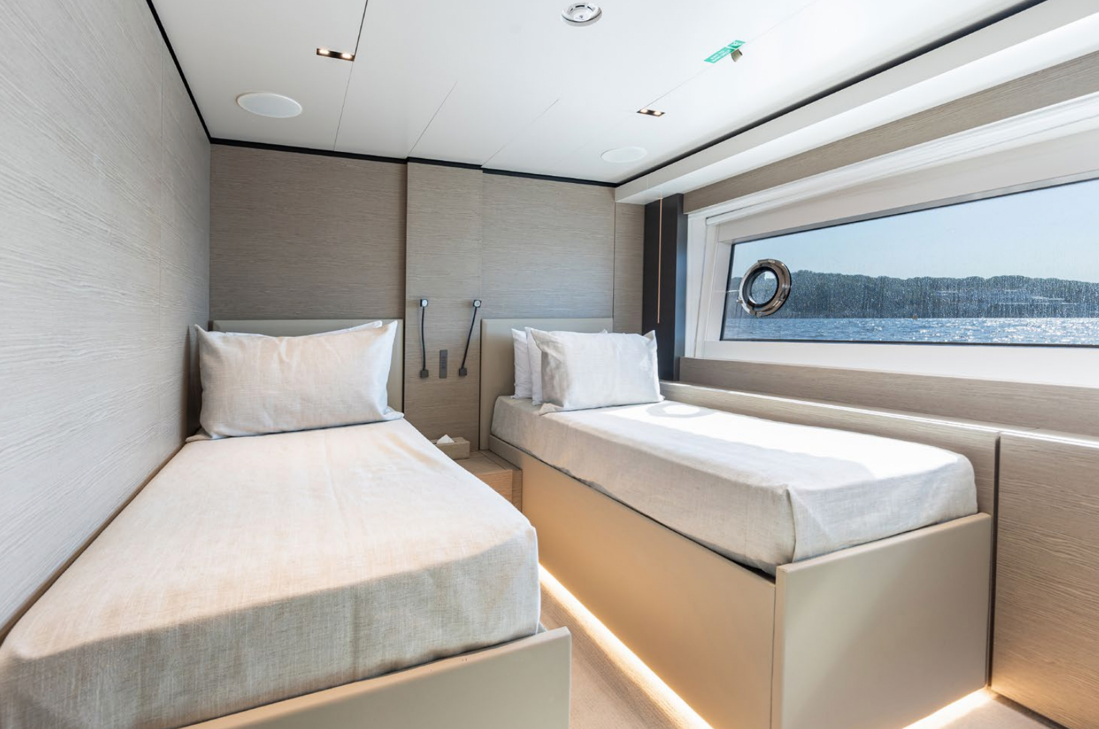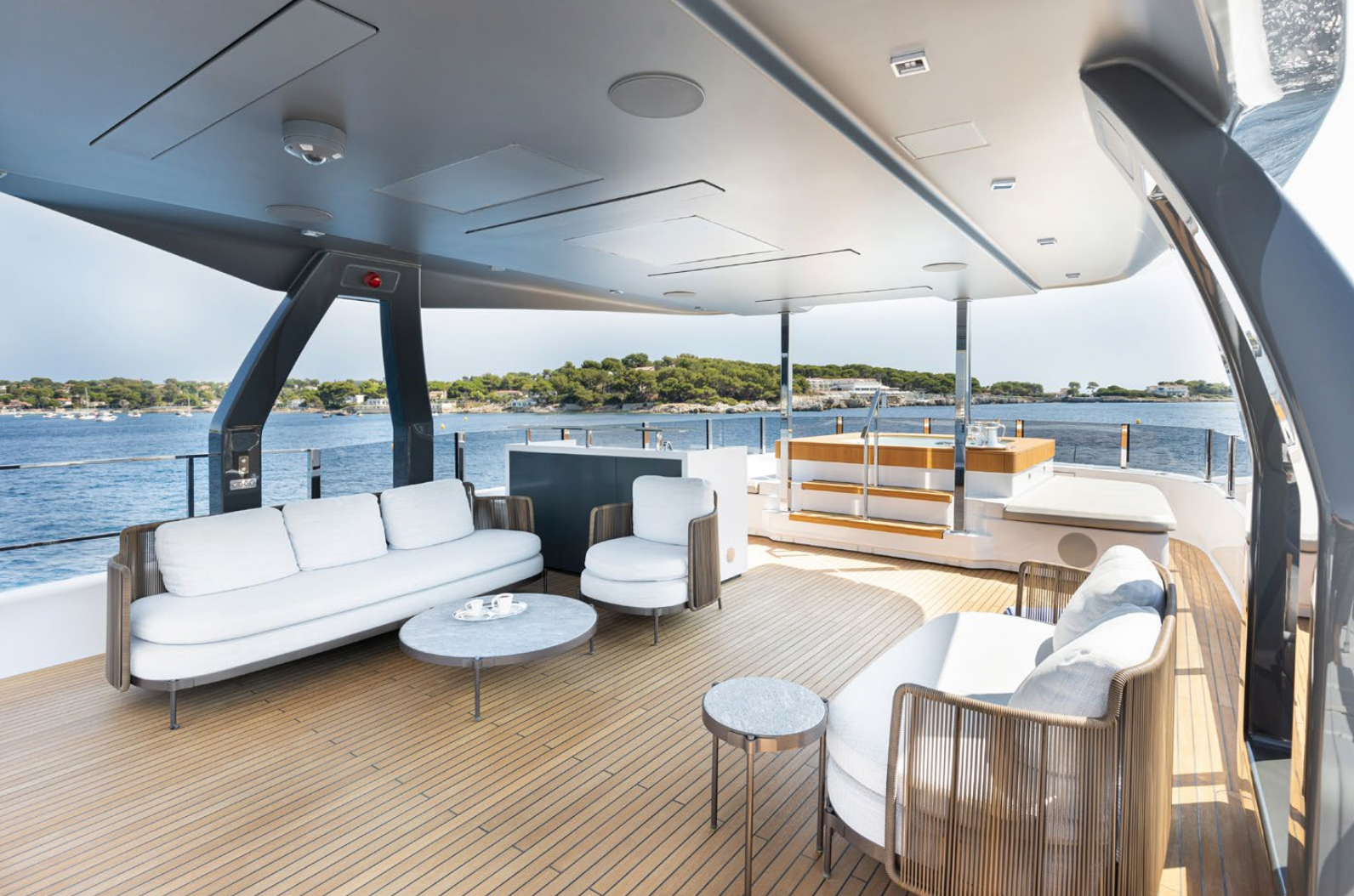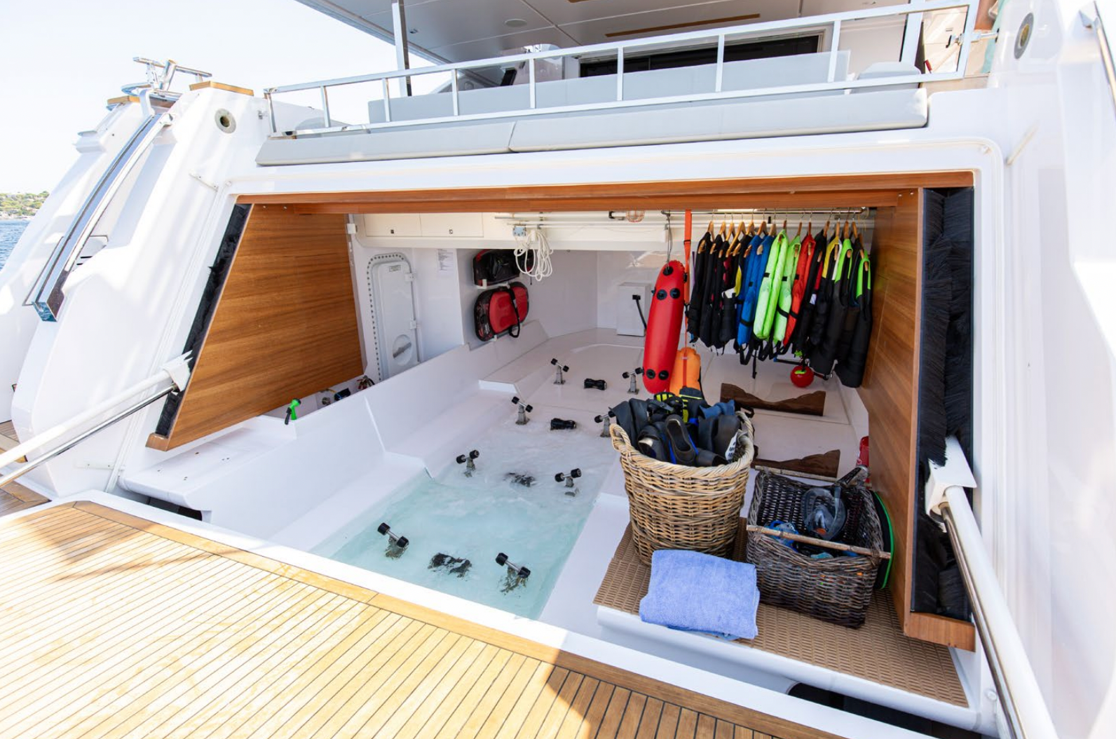 Indulge in the 5 star Luxury Lifestyle on board M/Y HAIAMI with a full crew of 7 at your service catering to your every need while Cruising the Mediterranean in Style. M/Y HAIAMI boasts of a Large Jacuzzi on the Flybridge, super spacious exterior deck to lounge, entertain, and sunbath.