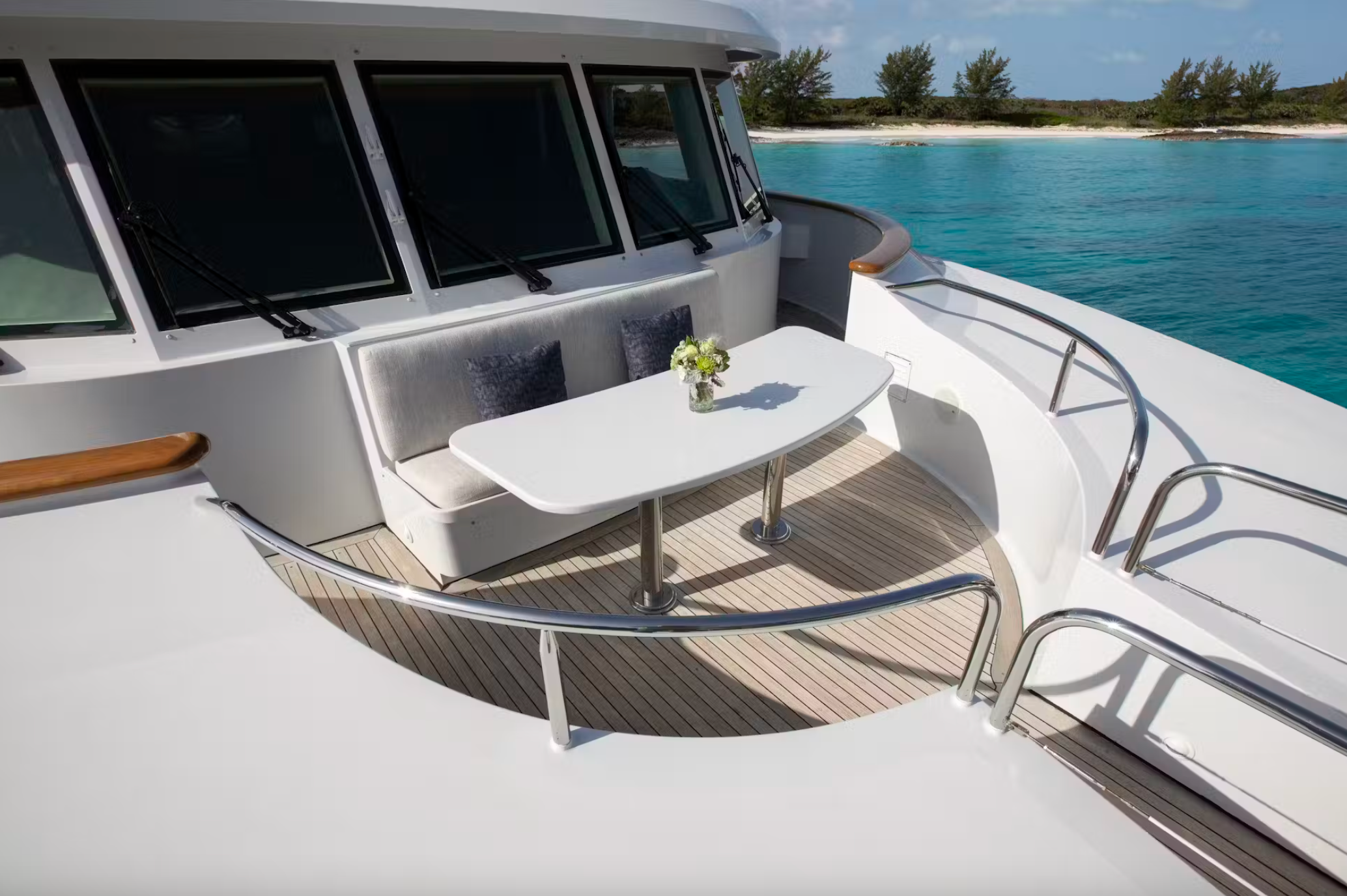 This Stunning Superyacht features Spectacular design with a classy and timeless look, large windows throughout the yacht that reveal the Picturesque Sea Views that brighten the interior space. Accomodating up to 12 guests in 5 Spacious Suites, a large sundeck, plenty of outdoor space, a Jacuzzi and a gym, this Superyacht makes for the perfect Yacht Charter Holiday in the Bahamas and the Caribbean.