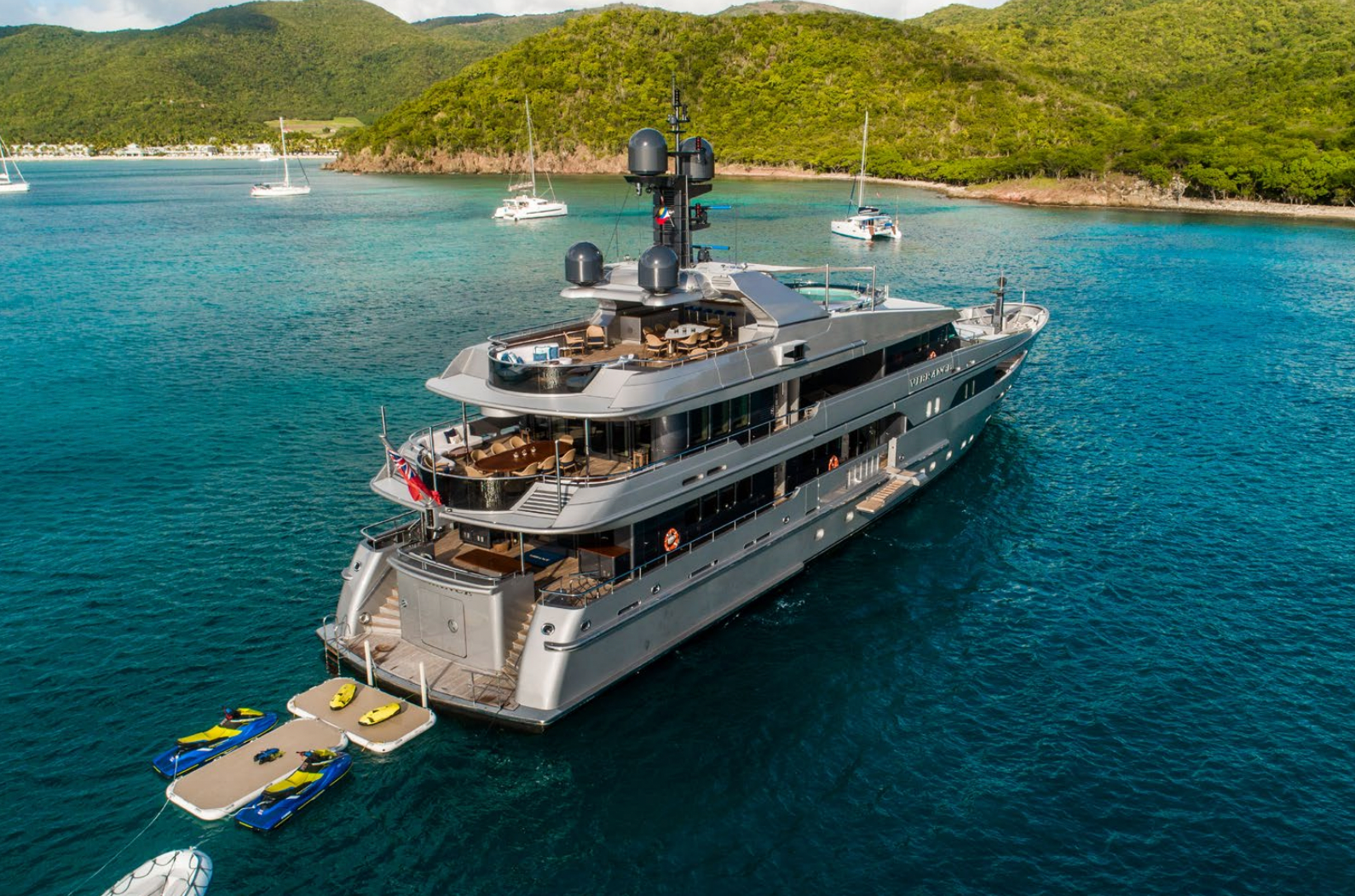 Indulge in the 5 star Luxury Lifestyle on board M/Y VIBRANCE Mega Yacht with a crew of 11 catering to your every need while Cruising the stunning Caribbean Sea in Style.