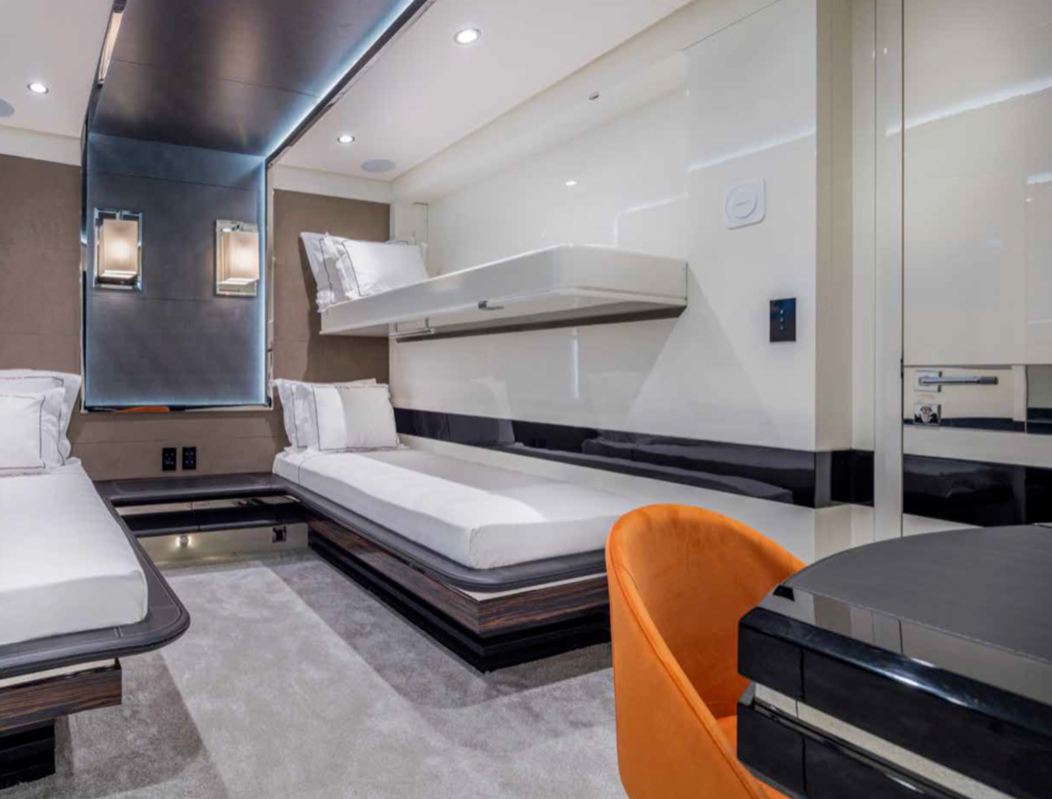 M/Y EUPHORIA II, is a Stunning Mega Yacht available for your Yacht Charter Holiday on the French Riviera and throughout the West Mediterranean. M/Y EUPHORIA II is a Superyacht measuring 49.56m in length, accommodating up to 12 guests in Five Spacious Cabins. Her Luxurious Interior will allow you and your guests to enjoy a Yacht Charter Vacation in complete and ultimate luxury with World Class Accommodations. The cabin configuration onboard M/Y EUPHORIA II consists of 1 Master Cabin, 2 Double Cabins and 1 twin Cabin. With Her Spacious Cabin Layout, M/Y EUPHORIA II is ideal for large charter groups consisting of family and/or friends.